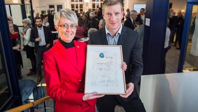 Flavio Orlik erhält von Claudia Bundi den mit 4000 Franken dotierten Sportförderungspreis.(Bild Marco Hartmann)
