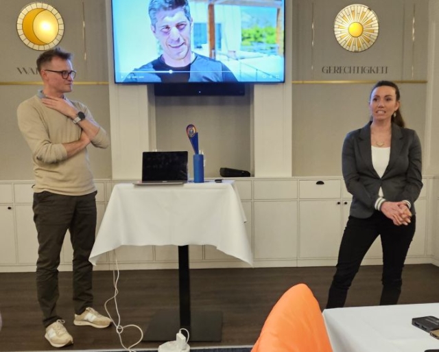 Schliesslich erzählte Selina noch von ihrer Teilnahme in der Fernsehproduktion "Champion of Champions", welche vor Weihnachten in 6 Folgen im SRF ausgestrahlt wurde. Die Sendungen mit den verschiedenen "Battles" zwischen den Teilnehmenden wurden in Andalusien aufgezeichnet. Selina trat dort gegen sechs weitere ehemalige SpitzensportlerInnen in verschiedenen Disziplinen an. Dazwischen blieb auch viel Zeit für den persönlichen Austausch und berührende Sofagespräche. Wer das jeweils abendliche Night-Game verlor, musste die Runde unverzüglich Richtung Heimat verlassen. Selina schaffte es unter die letzten drei, musste sich dann aber als Erste dem Kampf gegen Eiswasser, Ball und Balance geschlagen geben. Die sieben Athletinnen und Athleten haben sich gemäss Selina so gut verstanden, dass sie sich auch weiterhin treffen möchten. Der Panathlon-Club Chur freut sich ebenfalls auf weitere Treffen mit Selina Gasparin – ein nächstes Mal anlässlich der Biathlon-WM auf der Lenzerheide.